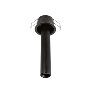 Faretto ad incasso orientabile. Struttura in alluminio. Diffusore in metacrilato trasparente antiabbaglio. Finiture in nero satinato. Modulo LED e trasformatore incluso ma non integrato.